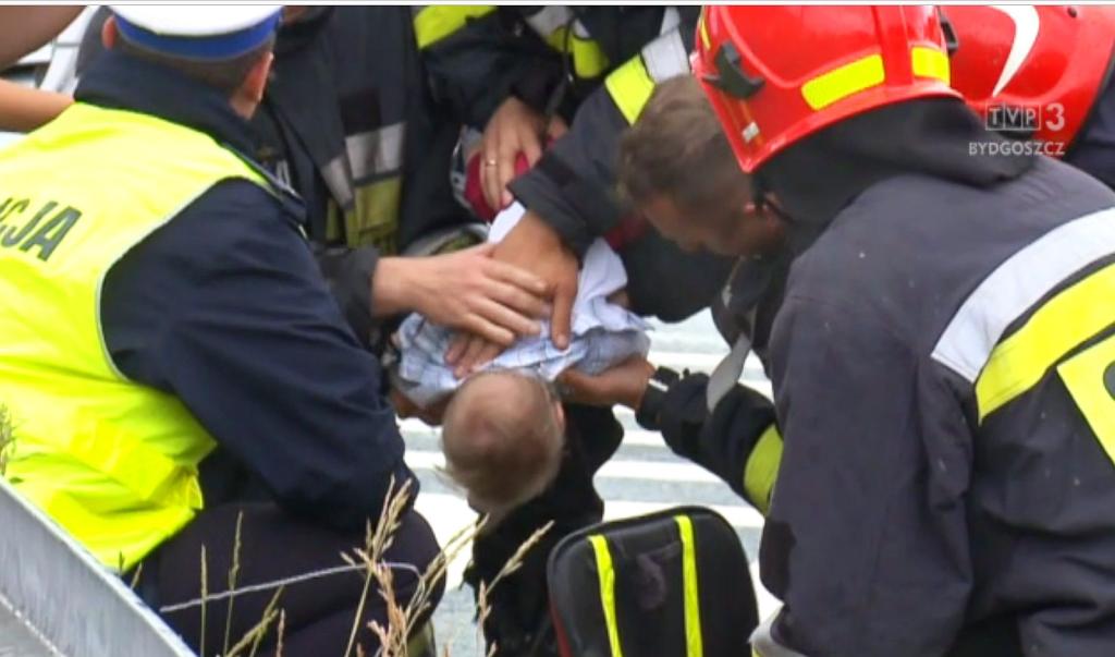 Policjant i strażak uratowali dziecko...pod okiem kamery telewizyjnej
