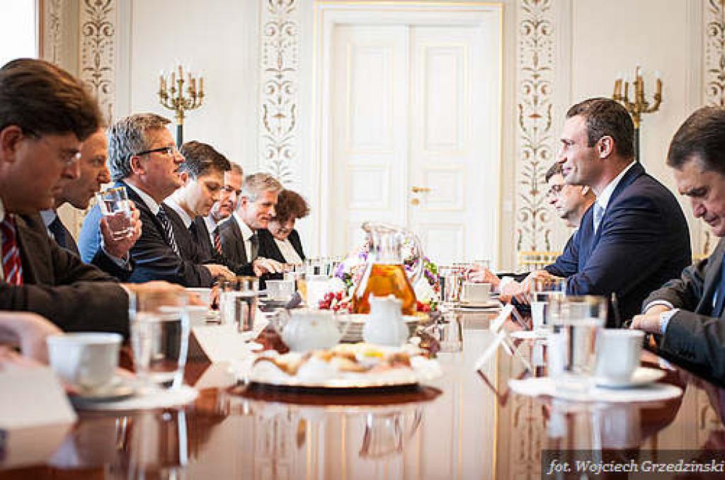 Prezydent Bronisław Komorowski spotkał się w poniedziałek w Belwederze z liderem partii Ukraiński Demokratyczny Sojusz na rzecz Reform (UDAR) Witalijem Kliczką.
