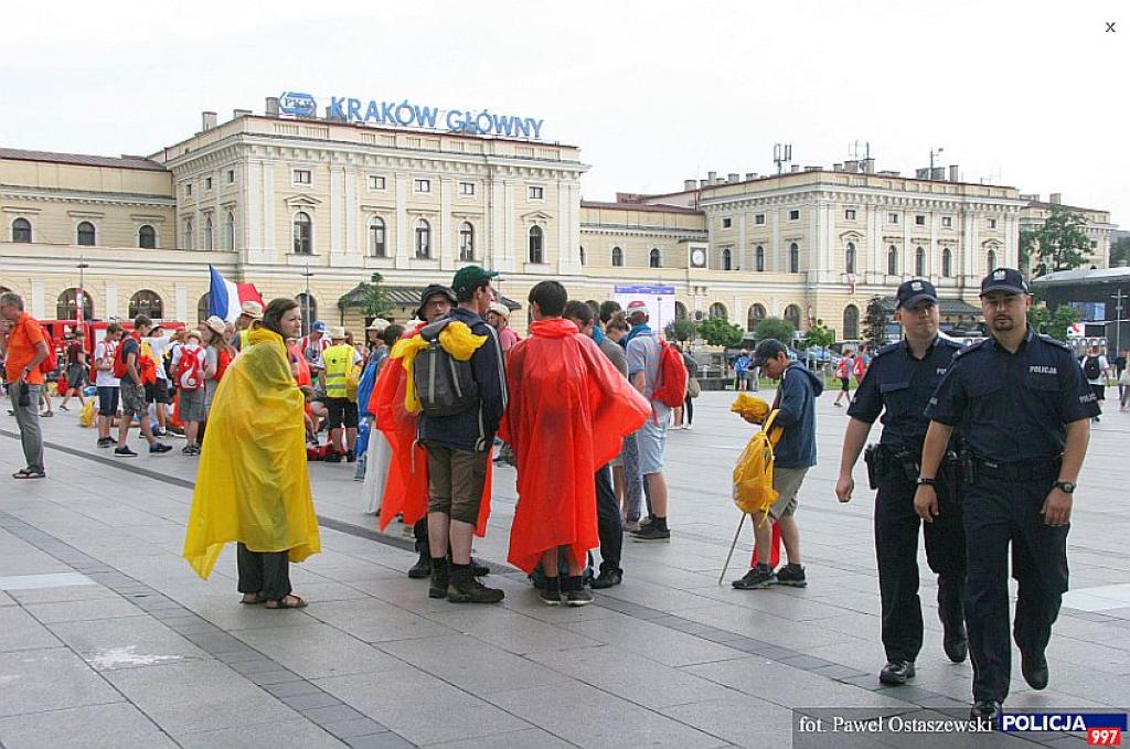 Kilkanaście tysięcy funkcjonariuszy różnych służb pełniło dzisiaj służbę na krakowskich ulicach i obiektach zapewniając bezpieczeństwo i porządek publiczny zarówno mieszkańcom Krakowa jak i przybyłym pielgrzymom. Funkcjonariusze Policji patrolowali przede wszystkim miejsca newralgiczne: trasy przemieszczania, gromadzenia się pielgrzymów, a także tereny organizowanych uroczystości, imprez oraz miejsc noclegowych.