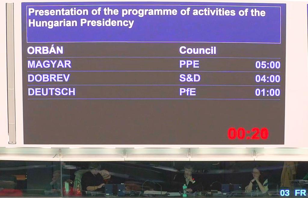 9 października w Parlamencie Europejskim europosłowie wraz premierem Węgier Viktorem Orbánem omawiali priorytety rozpoczętej 1 lipca i kończącej się z końcem roku prezydencji węgierskiej w Radzie UE. Część mówców krytykowała węgierskiego premiera, głównie za podważanie walki Ukrainy z rosyjską agresją, współpracę z reżimem w Moskwie oraz odchodzenie od europejskich wartości. Inni chwalili węgierski rząd za jego stanowisko w sprawie migracji i umieszczenie konkurencyjności na szczycie swoich priorytetów. Zdaniem europosła Tobiasza Bocheńskiego z Prawa i Sprawiedliwości z debaty uczyniono trybunał nad Węgrami.