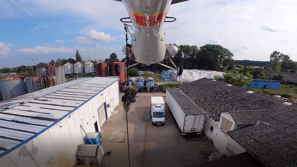 Z uwagi na trudno dostępny teren, w którym znajdował się cały kompleks fabryczno-magazynowy oraz fakt, że od zewnątrz był na bieżąco monitorowany przez kilkanaście zainstalowanych kamer przemysłowych i nadzorowany przez członków grupy, w działaniach wykorzystano śmigłowiec Kania z IV Wydziału Lotniczego Biura Lotnictwa SG w Huwnikach, z którego zespoły realizacyjne NwOSG dokonały desantu na teren fabryki.