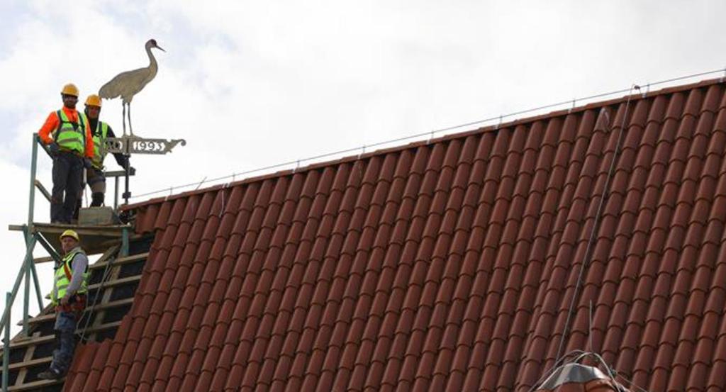 Wiatrowskaz w kształcie żurawia powrócił na modernizowany zabytkowy dźwig portowy w Gdańsku